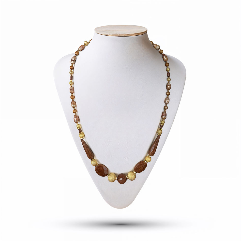Colar longo de Pedra do Sol e Pérola Barroca. Acabamento Banho de Ouro 18K