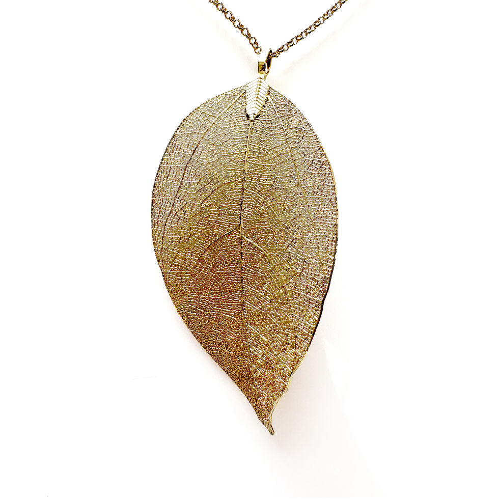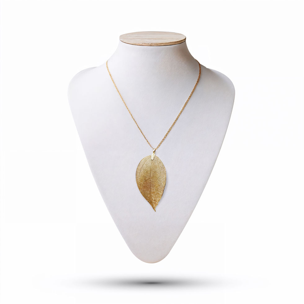 Colar com Pingente Folha G, disponíveis no Banho de Ouro 18k e Banho de Prata.